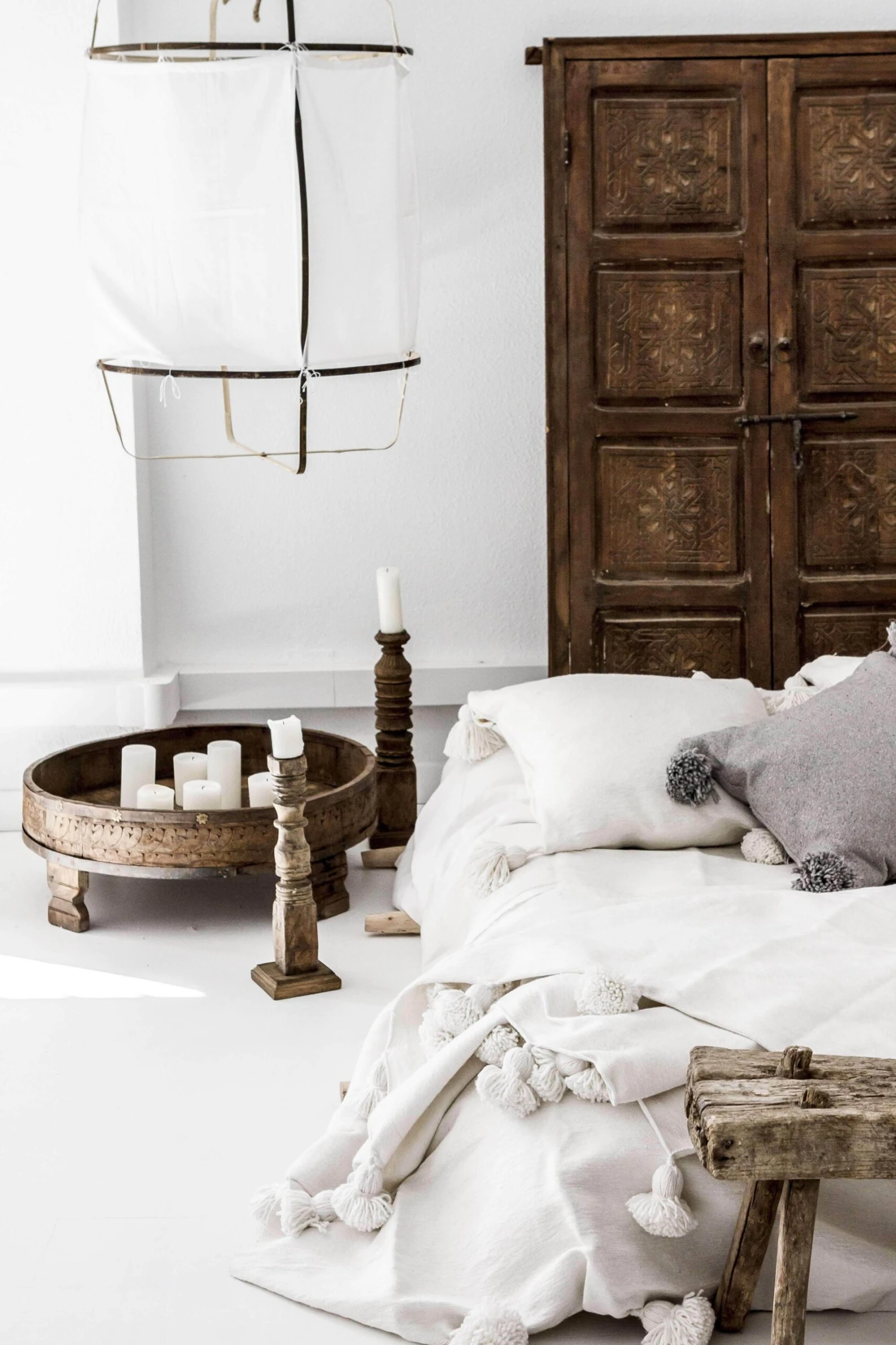 Ay Illuminate Z1 hanging lamp with bamboo frame and white cotton looks great in any interior.Â