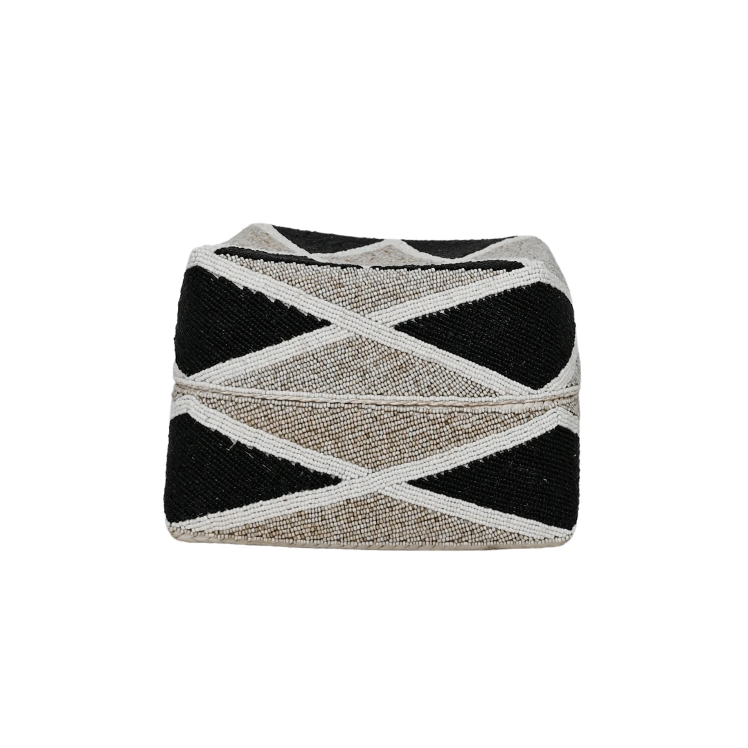 This hand beaded basket fits as contemporary decor.