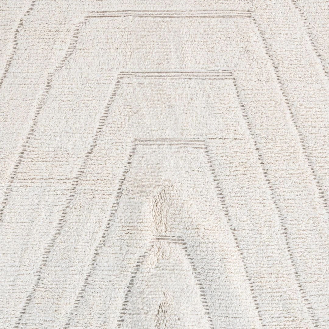 This beautiful hand knotted piece in natural ivory colour gives this Beni Ourain an impressive design.