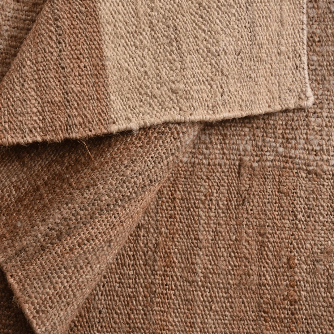 Handcrafted with natural jute and wool, this jute rug adds texture and warmth to any space. It effortlessly complements a boho aesthetic or a more contemporary style interior design, while providing extra coziness and interior design partitioning.