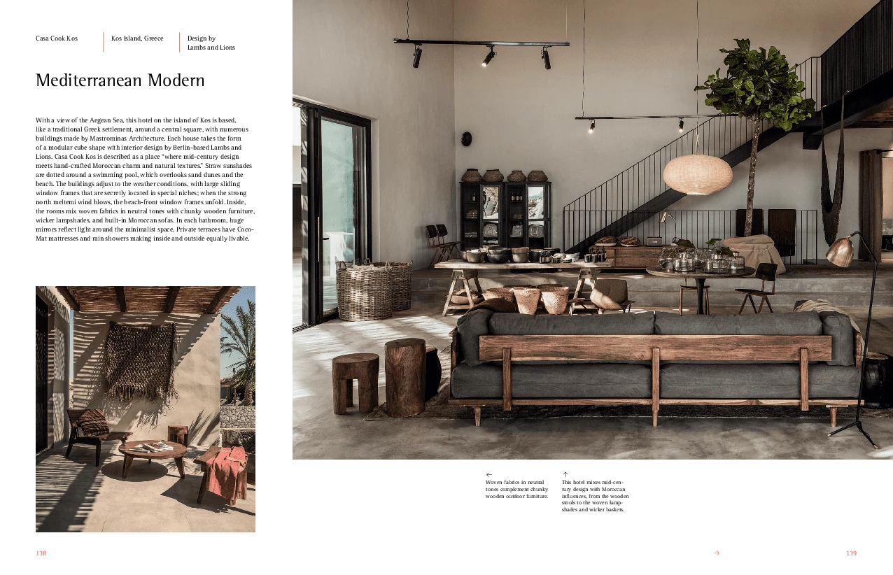 A welcoming, new, down-to-earth modernism is gaining momentum, from California to Morocco, Portugal to Mexico. This direction in interiors combines Mediterranean folkloric influences with a contemporary aesthetic?taking cues from sunny landscapes to embrace warmth, light, and organic elements. The New Mediterranean showcases inspiring residences and vacation homes around the world that combine rustic, earthy tones with colorful fabrics, ceramics, rattan furniture, and Berber carpets which are offset by whitewashed walls, concrete, brick, terracotta tiles, and glass.
