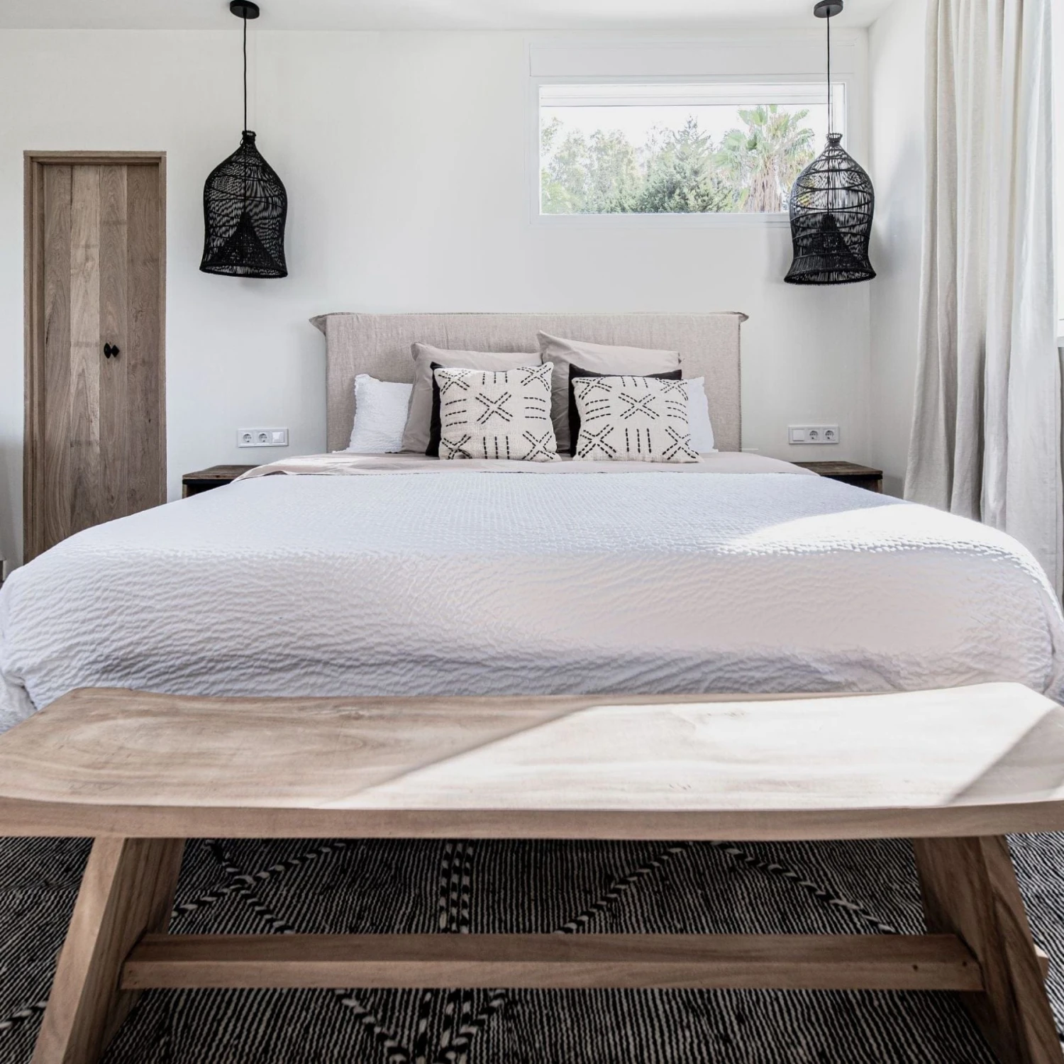 This lampshade is handcrafted in Indonesian and is made from thin rattan strips.