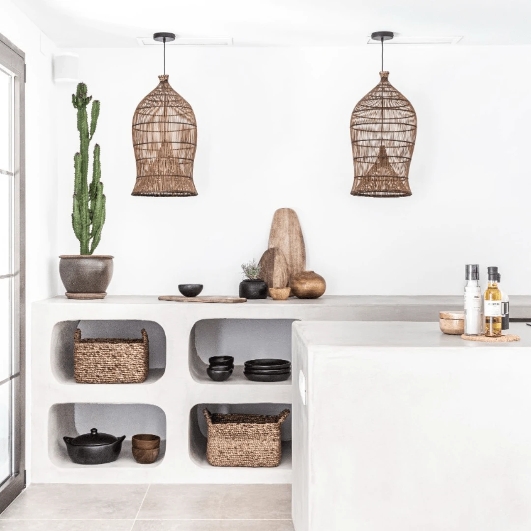 Indonesian fish trap lamp is hand made from thin rattan strips. Lamp shade will make for a great feature in any room or living space. Place fish trap lamp over the dining or coffee table and you have a real eye-catcher.