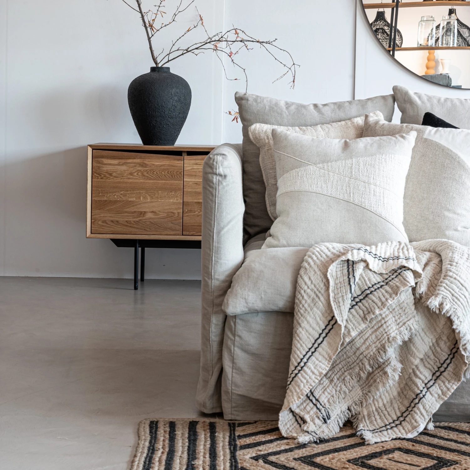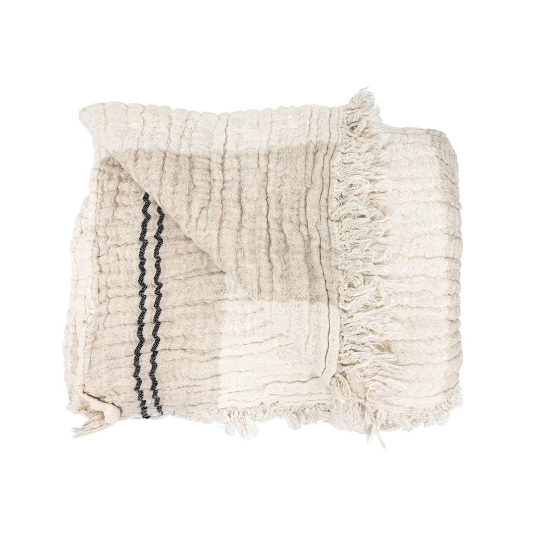 Offer a graceful touch to your bedroom with this Fouta Throw in black, white and sand colours. The off-white and black colour combination provide any space with elegance and the linen and cotton material gives you with maximum comfort.