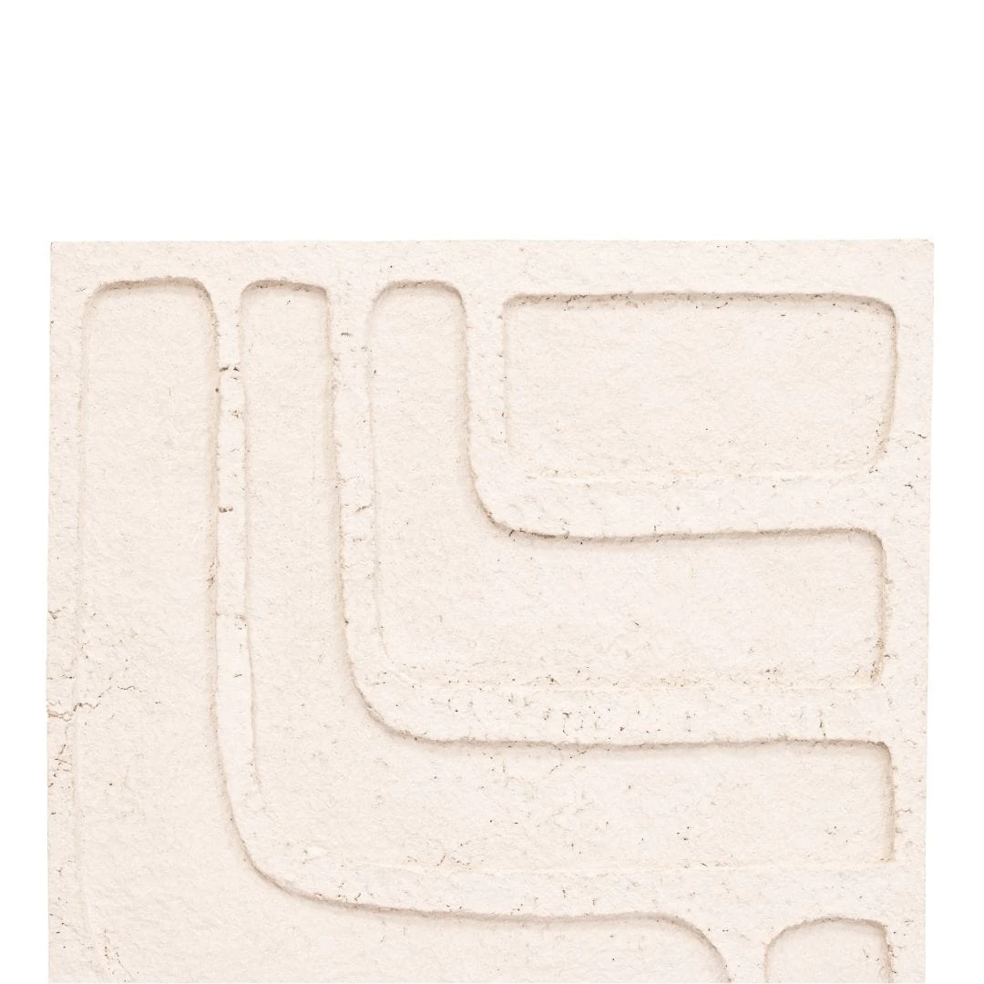 This Paper Mache Wall Deco features rough corners and subtle imperfections, offering an organic and authentic ambiance. Crafted from paper mache, each piece is handmade by pouring paper pulp into hand-carved molds. Once de-molded and dried, they are meticulously manipulated to achieve the desired natural colour.