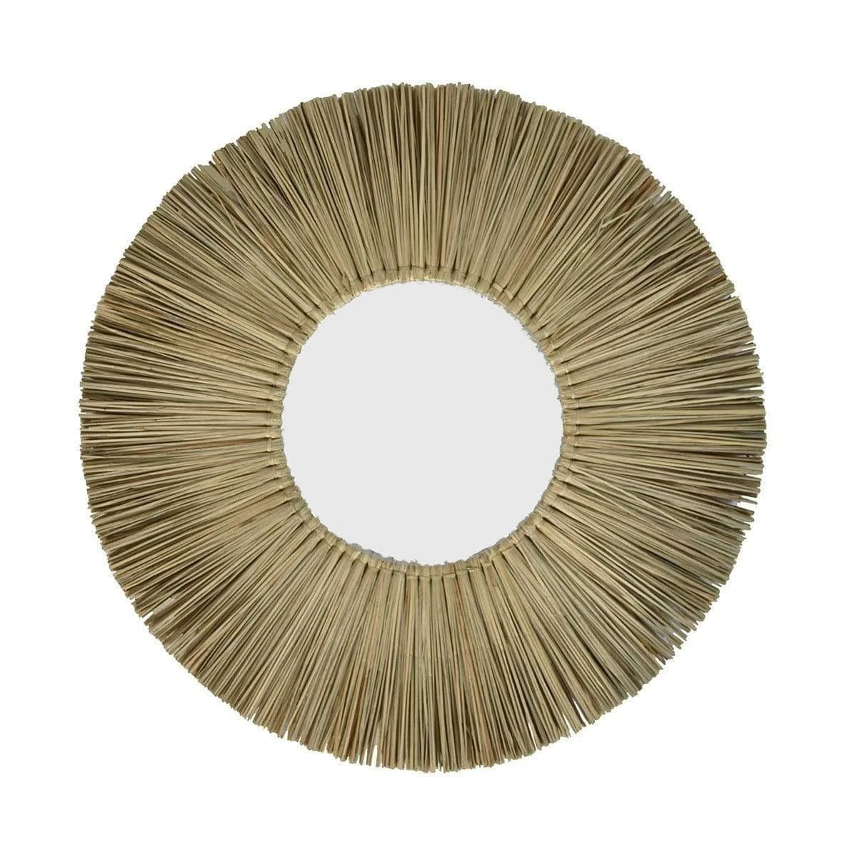 Hand crafted round seagrass mirror bring a nice ethnic touch to your interior from bathroom to your entrance.