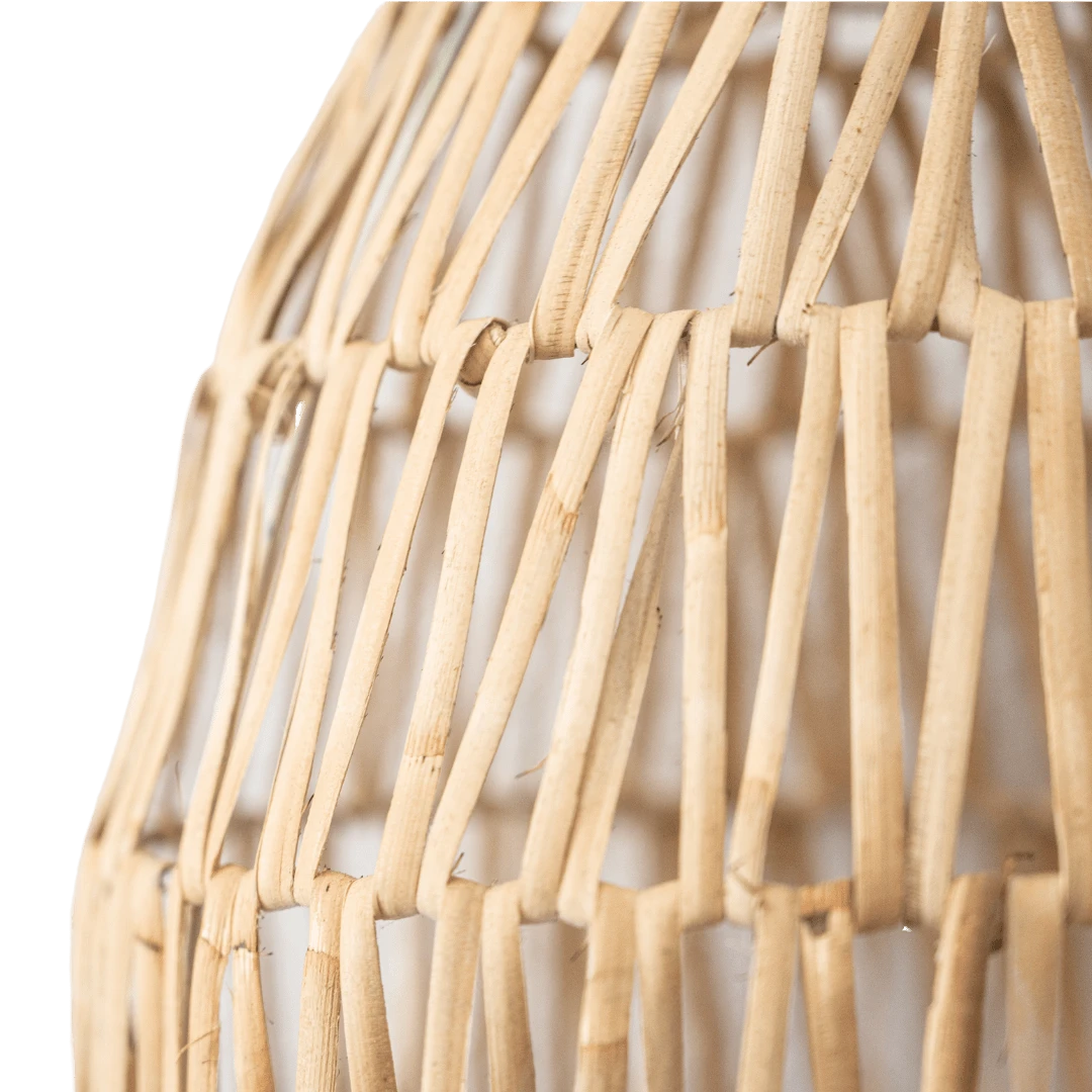 Made from thin rattan strips that have been handwoven into a beautiful criss-cross pattern that gives off a unique light and shadow.