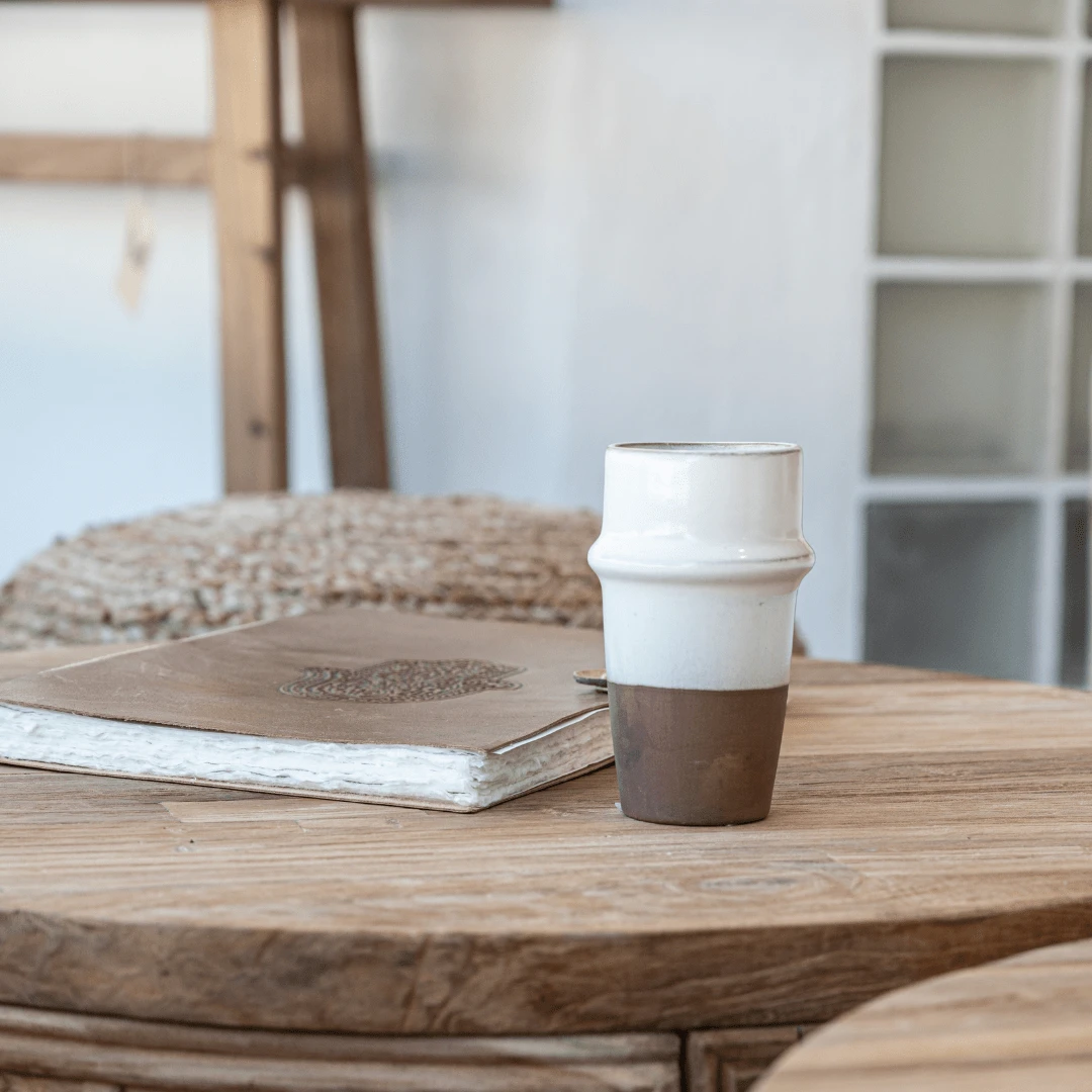 This beautiful cup offers a contrasting soft and textured surface that is unique and contemporary. Light in the hand, with a refined design, this ceramic cup is perfect for any warm or cold beverage.