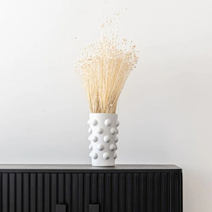 Please note that no two products will be exactly alike as they are hand crafted. This stoneware dotted vase in white colour is also the ideal gift!