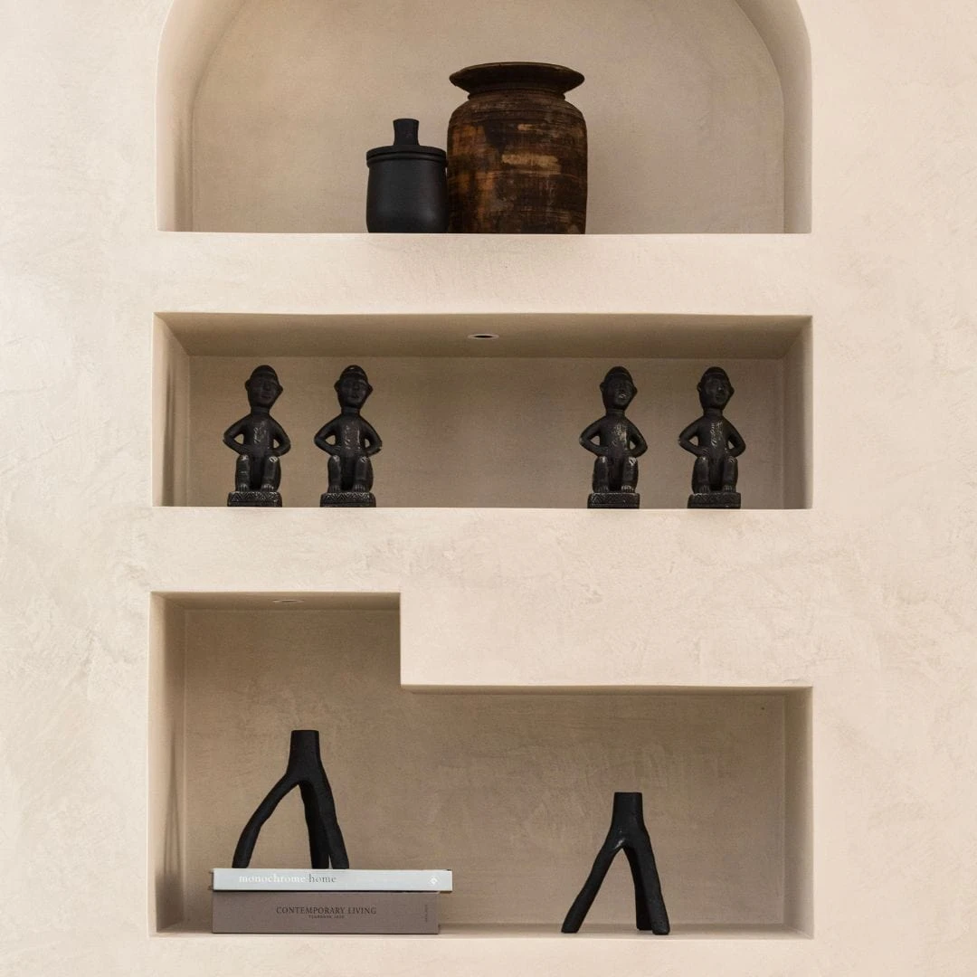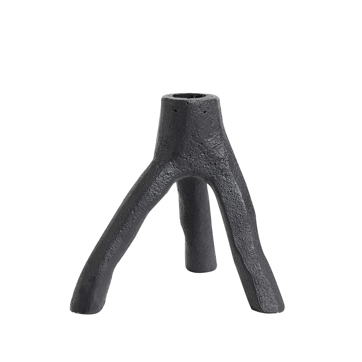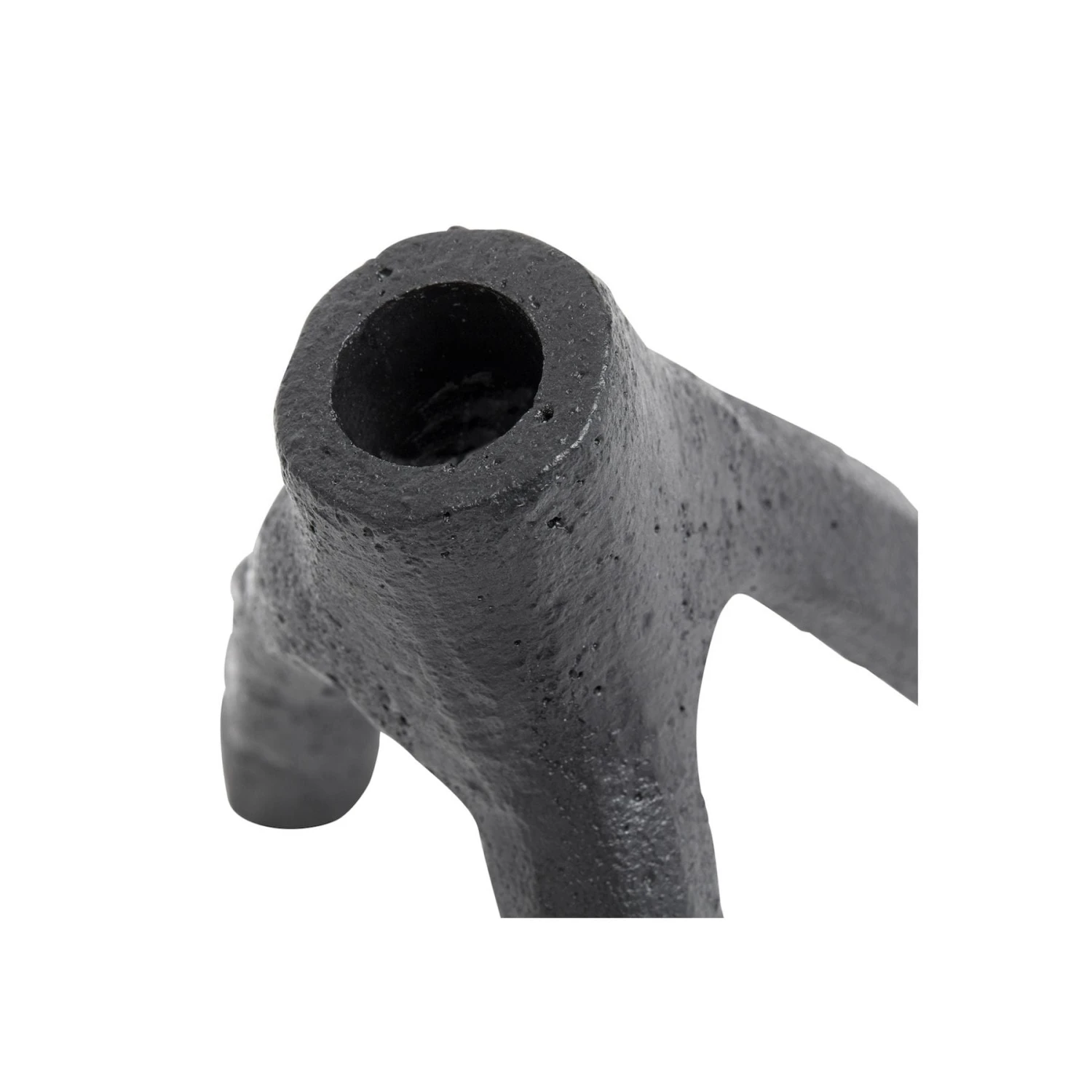 The design of this Tulum Candle Holder is hand shaped from clay and then after which they were casted into their shape. This unique Tulum Candle Holder is made out of cast iron and then painted black.