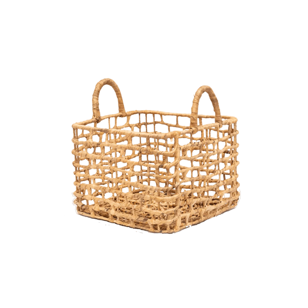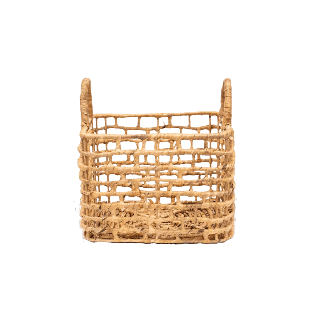 The handwoven basket has been made using natural water hyacinth stalks, which once harvested and dried and woven are surprisingly resistant. This aquatic plant is traditionally grown and used for many purposes, one of which is creating a range of beautifully woven home decor products such as baskets and other storage and organisation accessories.